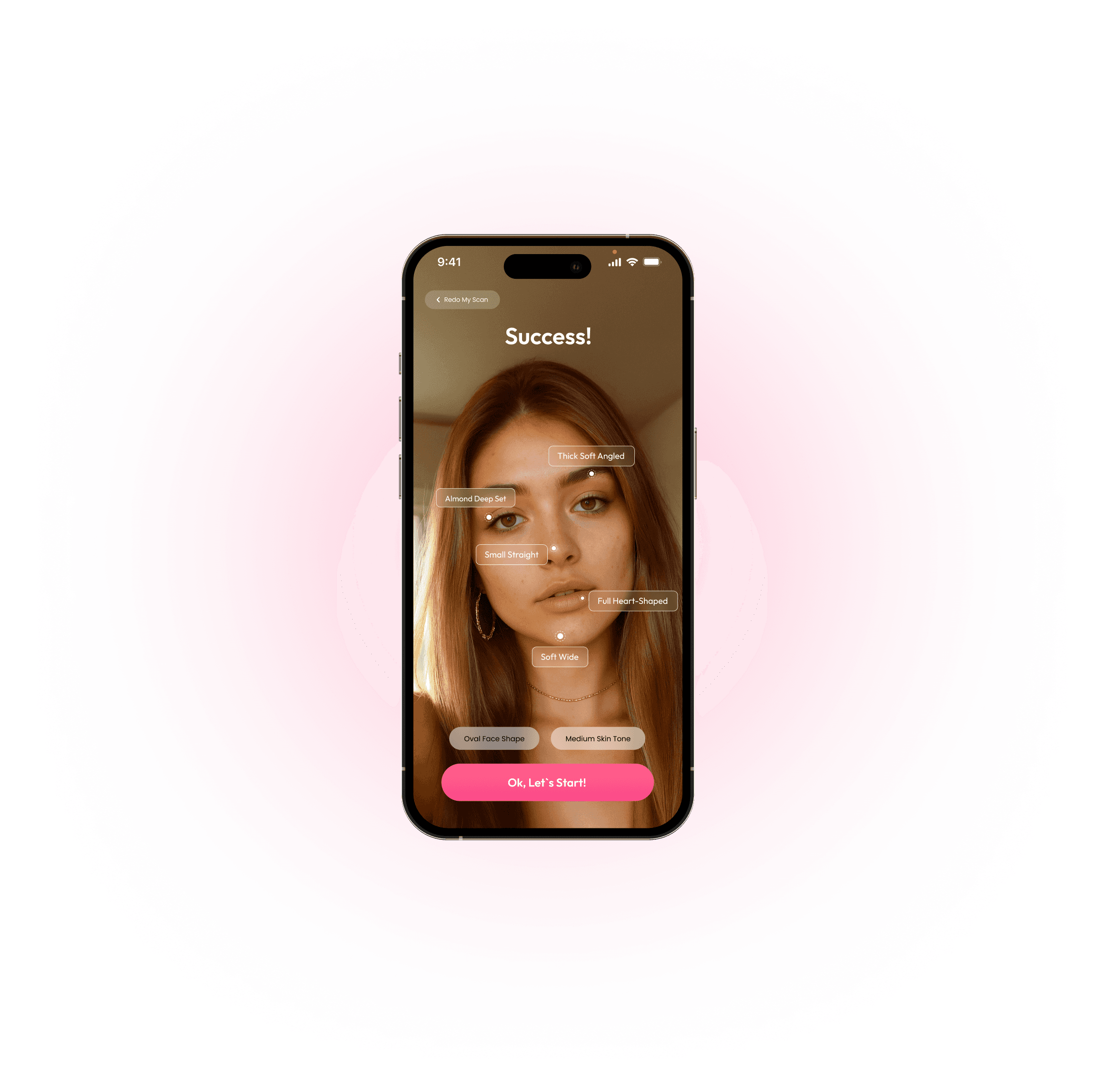 After one scan, Gloss AI recommends makeup looks that fit your face shape, features, and skin tone. No more generic inspo.